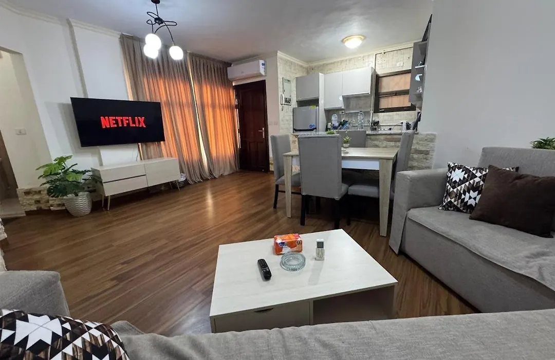 عزز إقامتك بالمطبخ كامل التجهيز المجهز بالمجمدة والفرن وأدوات المطبخ لراحتك في الشقة. مكان الإقامة بمساحة 45 مترًا مربعًا يقع على بعد 25 دقيقة بالسيارة من مطار القاهرة الدولي.